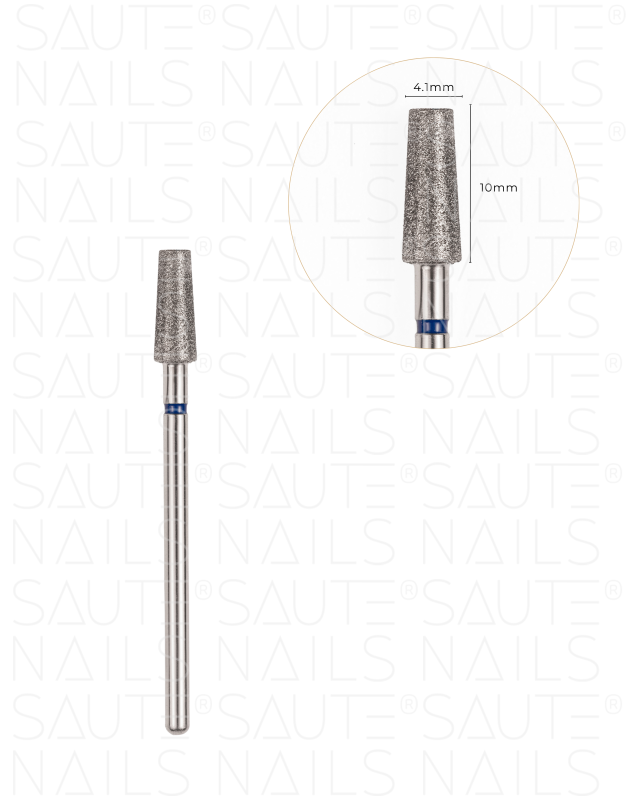 Punta diamantata per cuticole dalla caratteristica forma tronco-conica con striscia blu.