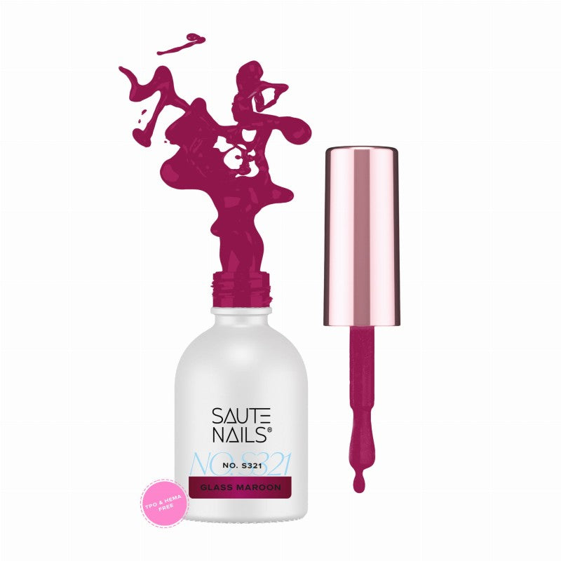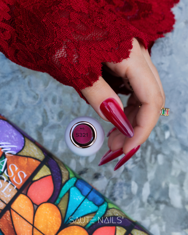 Glass Maroon S321 è un bordeaux semitrasparente che crea un effetto vetro. Usato da solo, come strato aggiuntivo sullo smalto semipermanente o abbinato al Cat Eye, aggiunge profondità e un effetto tridimensionale ai disegni.