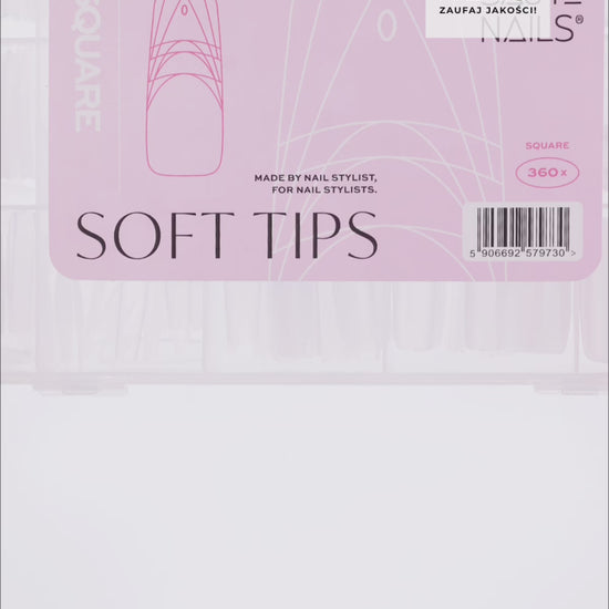 Soft Tips Square sono le classiche punte quadrate con fori per un facile accorciamento e una vestibilità perfetta. Realizzate in materiale flessibile, sono disponibili in un colore trasparente opaco, 360 pezzi in 15 misure.